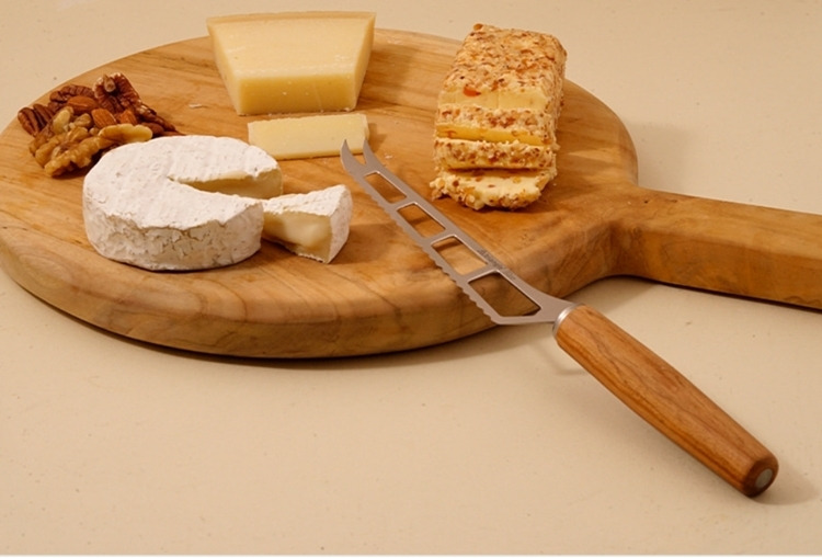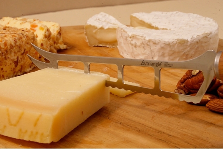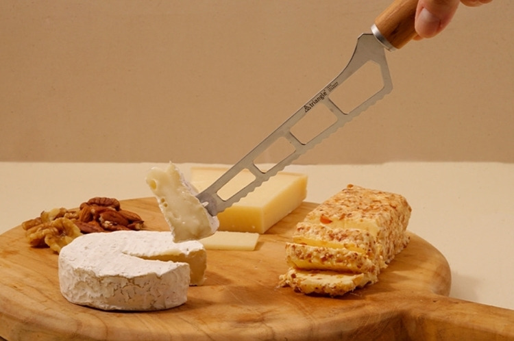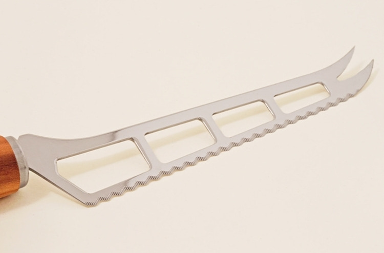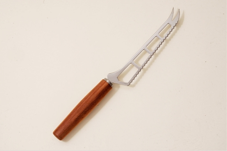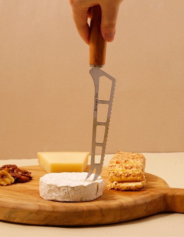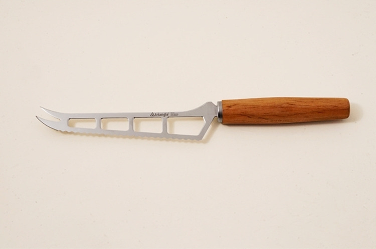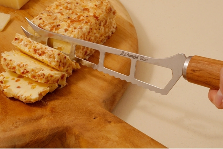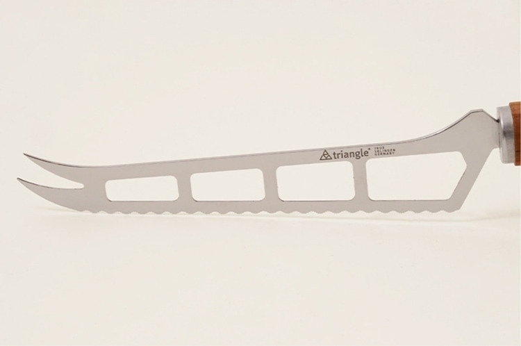 這款來自德國刀具之都索林根的起司刀,專為布里(Brie)、卡門貝爾(Camembert)、山羊起司等軟質乳酪打造。纖細且經過特殊雕刻的不鏽鋼刀刃,能大幅降低切口沾黏,讓每一塊起司都保持優雅原貌。